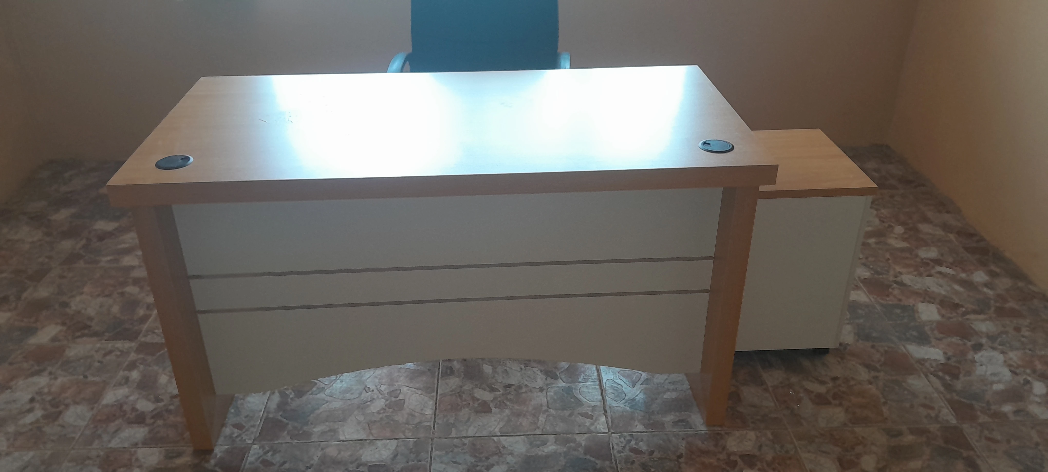 Maximize your workspace and minimize clutter with our 120cm office desk. This sleek, functional desk features a unique, ridable filing cabinet with three smooth-gliding drawers that are secured by a central locking mechanism. Achieve perfect organization and peace of mind in your home office or workspace. Key Features SPACIOUS & ERGONOMIC DESIGN: A generous 120cm (approx. 47-inch) wide desktop provides ample room for multiple monitors, paperwork, and other essentials, all within comfortable reach. RIDABLE & LOCKABLE CABINET:The attached cabinet glides smoothly on wheels, allowing you to easily reposition your storage without lifting. A central lock secures all three drawers with one turn of a key, protecting sensitive documents and valuables. ORGANIZED STORAGE: Three spacious drawers help you declutter your desktop. Perfect for storing files, stationery, tech accessories, and personal items, keeping your workspace tidy and efficient. * **DURABLE & STYLISH:** Crafted from high-quality, scratch-resistant materials with a sleek finish that complements any modern office decor—from minimalist to professional. EASY ASSEMBLY: All necessary hardware and clear instructions are included for a straightforward setup, so you can get to work faster. Transform your work-from-home experience or upgrade your corporate office with this intelligently designed 120cm office table. We understand that a productive environment requires both space and smart storage, which is exactly what this desk delivers. The star of the show is the integrated, ridable cabinet. No more straining to move heavy furniture; simply glide the cabinet to your desired position for optimal accessibility. Inside, you'll find three full-size drawers, offering layered storage for everything from hanging files and A4 folders to smaller office supplies. Security is seamless with the central locking system. A single key locks all three drawers simultaneously, providing a safe haven for confidential documents, financial records, or any items you wish to keep secure from children or pets. The robust 120cm wide desktop is built to support the demands of a modern workstation, easily accommodating laptops, monitors, and task lighting without feeling cramped. Its clean lines and professional appearance make it a versatile centerpiece for any room. |